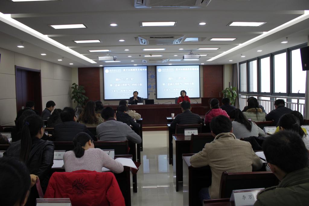为进一步提升辅导员政治素养,加强队伍建设,11月20日下午,学校在行知楼2009会议室举办“践行‘三严三实’做‘忠诚干净担当’的好干部”专题讲座,此次讲座由校纪委书记汤增产主讲,学生工作部部长马平主持,各学院党总支副书记和全体辅导员听取了此次报告。