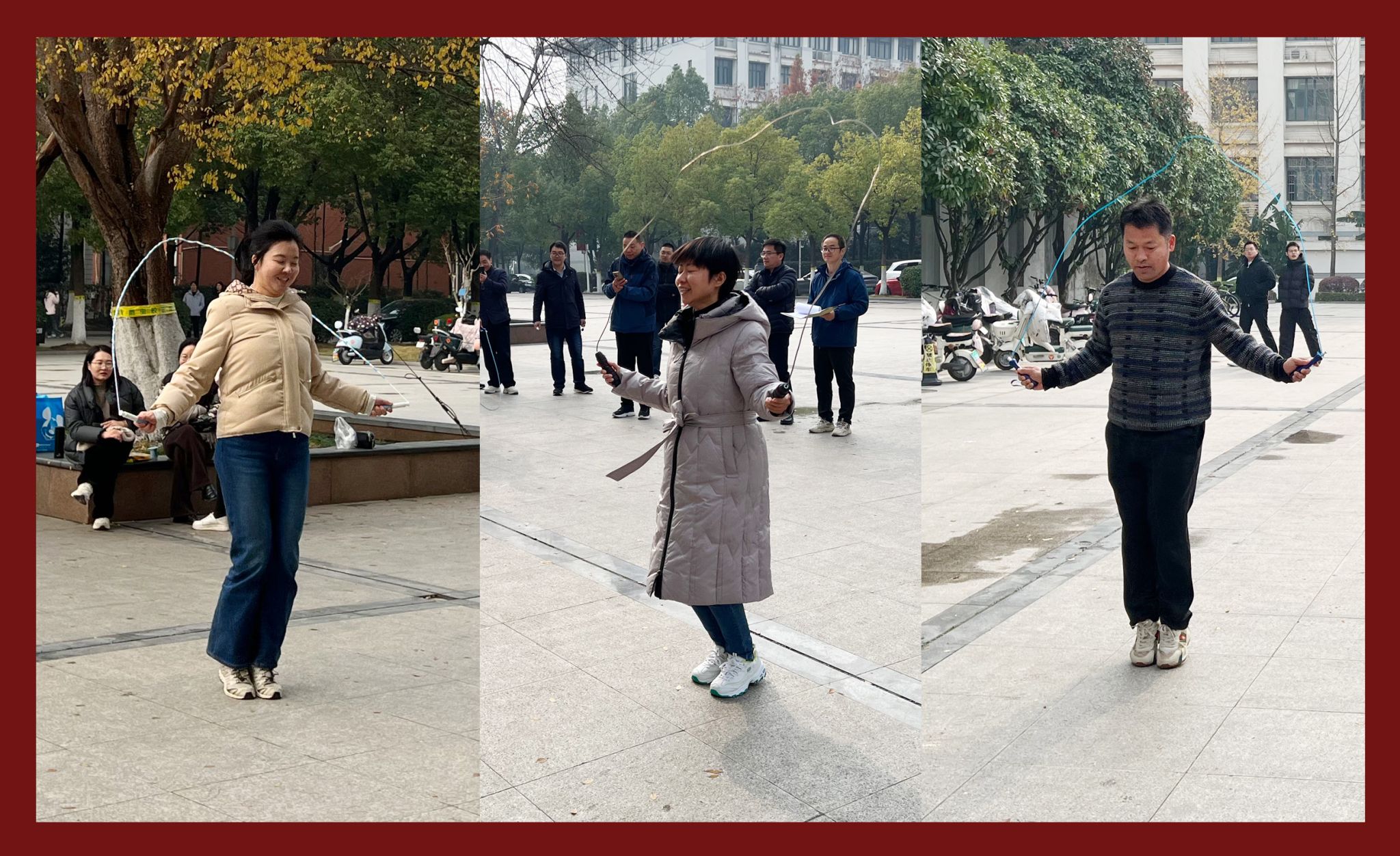 活动中,有的教职工跳绳技巧娴熟,速度飞快,让人目不暇接;有的则稳扎稳打,保持着均匀的节奏,展现出良好的耐力。比赛分为男子组和女子组,以一分钟内跳绳次数为活动的参与方式,大家相互鼓励、相互学习,既锻炼了身体,也释放了压力。