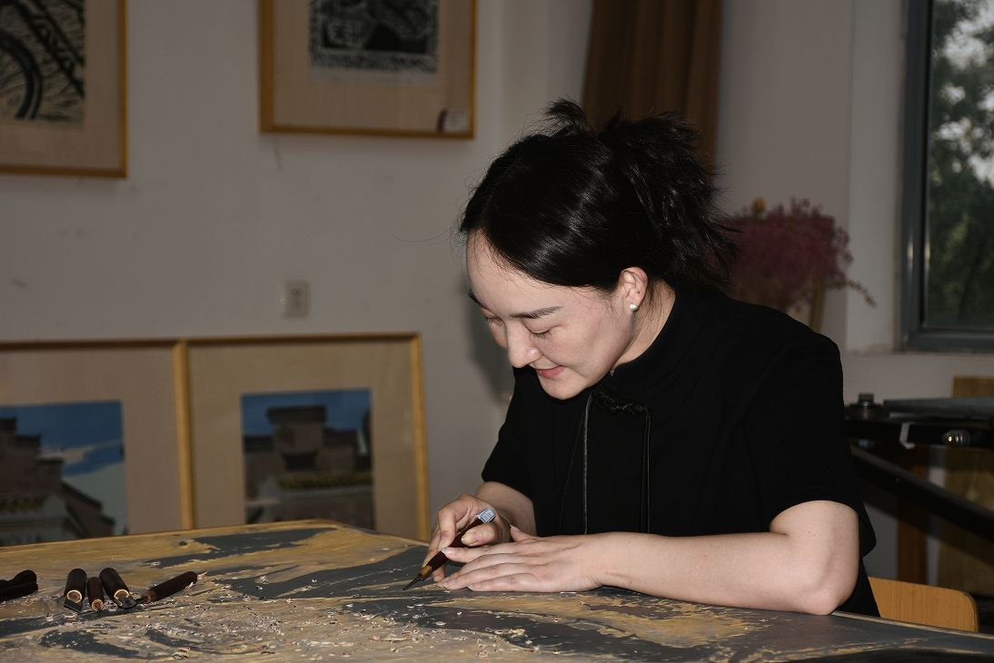 2015年,怀揣着对传统艺术的热爱,郭益走上了美术教室的三尺讲台。从此,木刻刀、油墨滚成为了她的随身之物,这位善于“玩刀”的老师也把全部精力投入到版画教学的基本功打磨中。