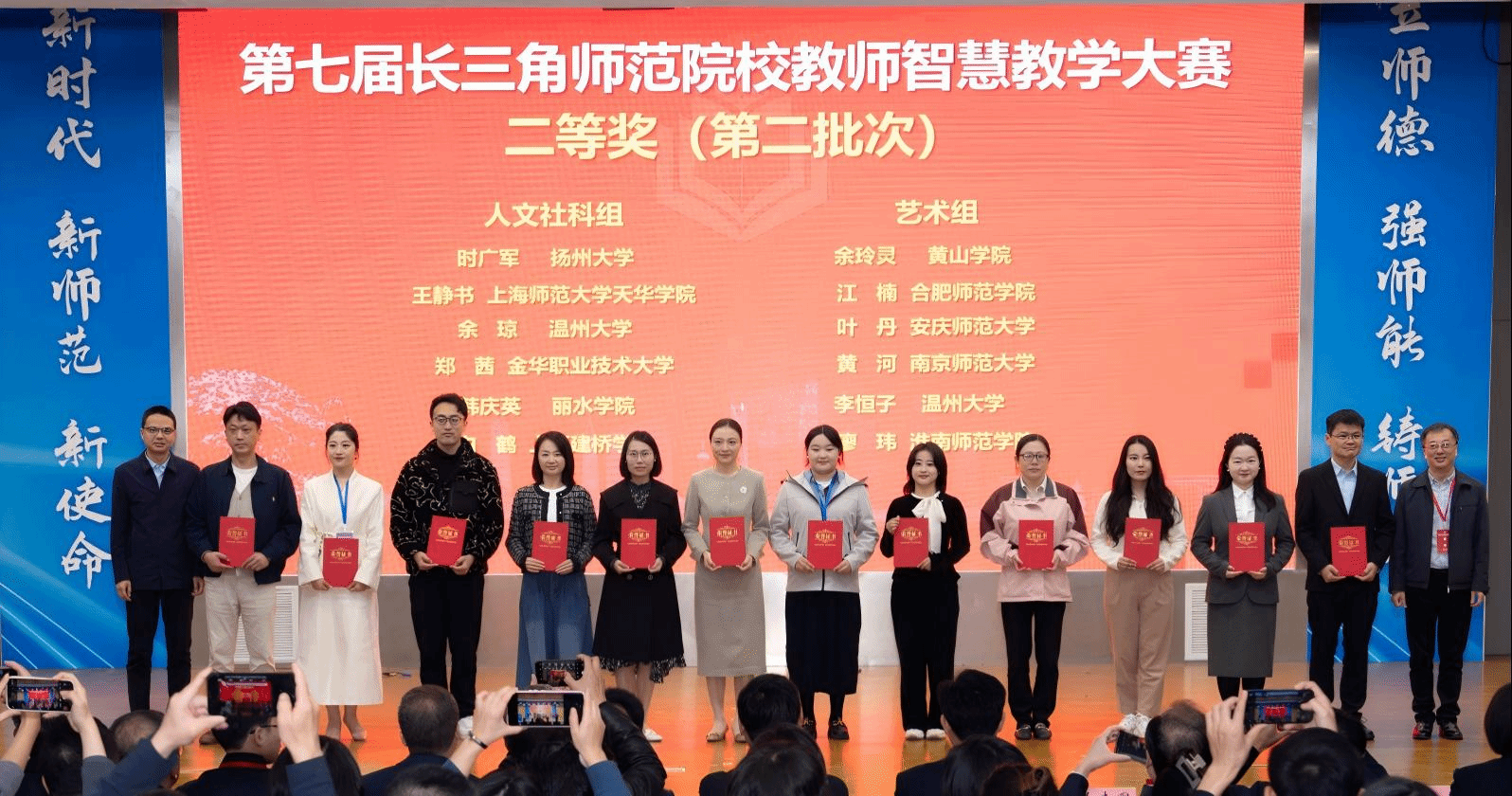 近日,由安徽省教育厅、上海市教育委员会、浙江省教育厅、江苏省教育厅联合主办,安徽师范大学承办的第七届长三角师范生教学基本功大赛与第七届长三角师范院校教师智慧教学大赛在芜湖举行。来自长三角地区51所高校的师范生和教师同台竞技,展现教学风采,我院师生凭借扎实的专业功底和出色的现场表现,在大赛中斩获多项荣誉,成绩斐然。
