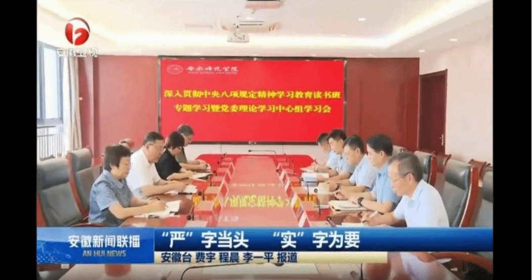 持续深化党的创新理论武装,开展深入贯彻中央八项规定精神学习教育。坚持以习近平新时代中国特色社会主义思想为指导,全校上下认真学习领会习近平总书记关于加强党的作风建设的重要论述,学习领会和贯彻落实中央八项规定及其实施细则精神。7月9日,“安徽新闻联播”对我校开展深入贯彻中央八项规定精神学习教育情况进行了专题报道。