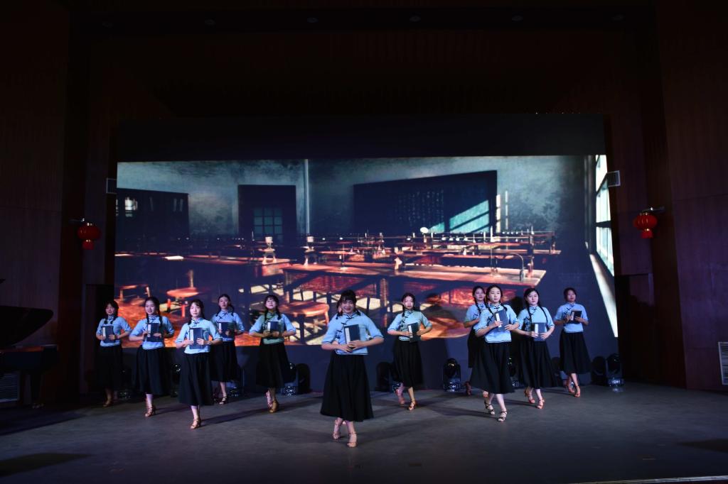 院领导为受表彰的集体和个人颁奖,并在演出结束后与全体演出人员合影留念。(院团委学生记者:王新鑫/文 院团委:王露/图)