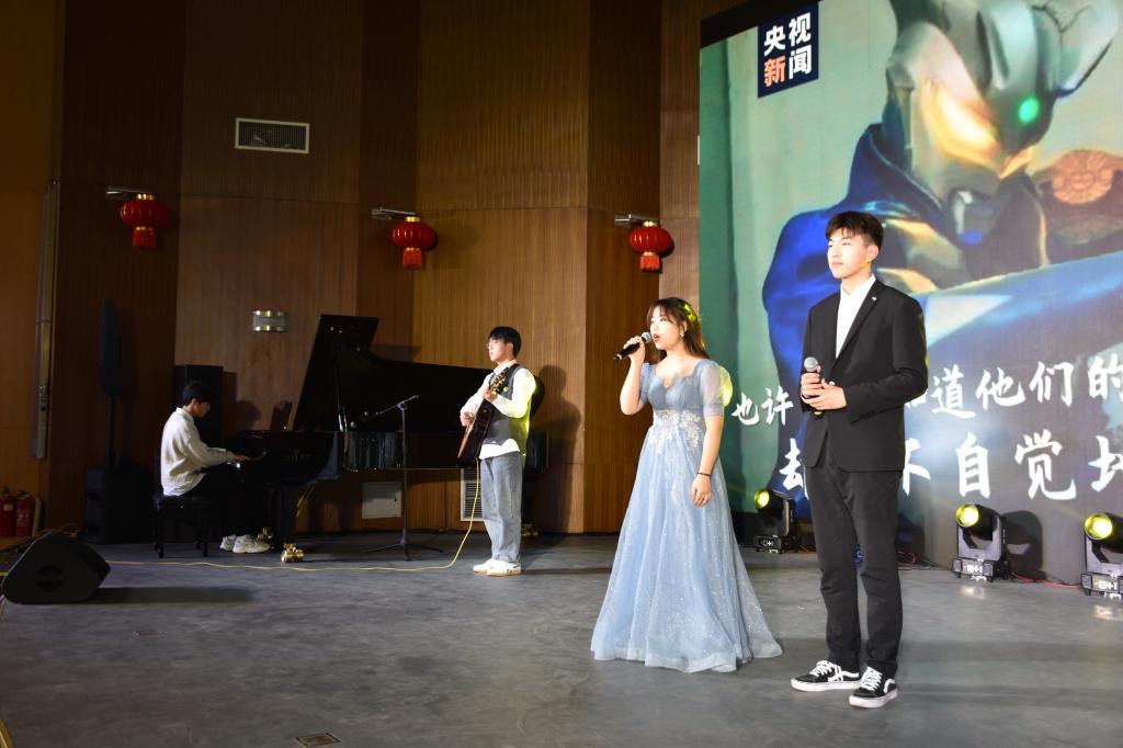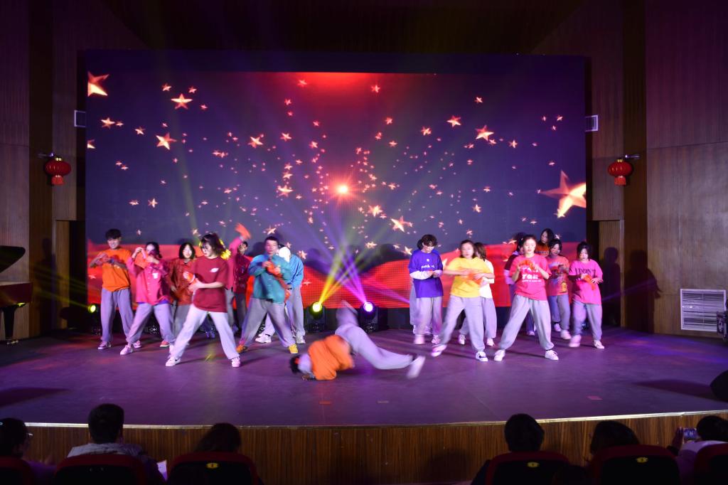 S·K·Y街舞协会带来的街舞《青春心向党·舞动耀国风》营造了活跃、喜庆的氛围,晚会在欢快的旋律中拉开了序幕。李新康、刘睿杰、方程慧、高佳佳、李汶洋、余蕾六位同学的百年礼赞歌曲串烧《错位时空》《少年》《星辰大海》表达了合师学子对党的敬仰,激励着合师学子奋发向上、勇担使命。大学生艺术团带来的舞蹈《东方红》生动呈现了党的百年辉煌,使每一位观众都为之振奋鼓舞,感到自豪与幸福。李静、董子辰、余航、王辰宇四位同学带来的歌曲《三孝口,不说再见》用声音记录了合师学子在三孝口校区生活的点点滴滴,唱出了合师学子青春的回忆。文记赏馨曲艺社的相声《骗术》用诙谐搞笑的语言动作,教会人们警惕诈骗,赢得场下一片掌声。大学生艺术团为观众带来了阿卡贝拉《彩虹》和《夜空最亮的星》,美妙的歌声荡漾在整个晚会现场。体育舞蹈协会的舞蹈《盛开在五月的花》舞出了青春的力量,以轻快的步伐彰显了新时代青年的蓬勃朝气。经济与管理学院的歌曲《不为谁而作的歌》歌颂了这不平凡的一年,表达了青年学子对新一年的期望。教师教育学院的舞蹈《春舞江南》用活力的唱跳展示了如今祖国的繁荣面貌,寄予了对伟大祖国繁荣昌盛的美好祝愿。音乐学院学生党支部的合唱《十送红军》与《映山红》带领观众回到那个战火纷飞的年代,让大家感受到红军英勇奋战的豪情和勇气。晚会在全体演员和观众齐唱《没有共产党就没有新中国》的歌声中画上了圆满的句号。