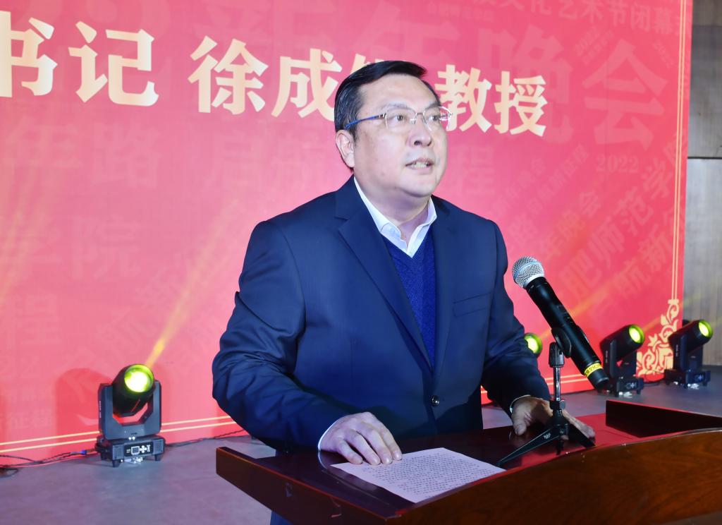 徐成钢代表学院发表了热情洋溢的新年贺词,向一年来勤奋学习、努力工作的全院师生致以美好祝福,向精心组织、积极参与本届科技文化艺术节的老师和同学们致以诚挚问候。他指出,2021年是中国共产党成立100周年,是学院全面开局“十四五”、统筹推进党的建设和事业发展的不平凡之年。一年来,全院上下团结一心、攻坚克难,抓党建、强内涵、促发展。学院广大团学组织和青年学生在在师范专业认证、“行知学堂”、“三优创建”、招生就业等工作和活动中取得了优异成绩,学院获评全国学雷锋志愿服务“四个100”先进典型、中国青年志愿者优秀项目奖、连续第三年蝉联全国暑期“三下乡”社会实践活动优秀单位,毕业生就业率在全省高校名列前茅,体育科学学院李慧茹同学在亚洲赛艇锦标赛女子轻量级单人双桨和双人双桨比赛中摘得两枚金牌等,充分展现了团学组织和广大同学的昂扬风貌。新的一年,学院将以召开第三次党代会为契机,强化党建引领,推动申硕攻坚,建好滨湖校区,加快建设地方应用型高水平大学。他号召全院上下以习近平新时代中国特色社会主义思想为指导,凝心聚力、勇毅前行,以优异成绩迎接党的二十大胜利召开。