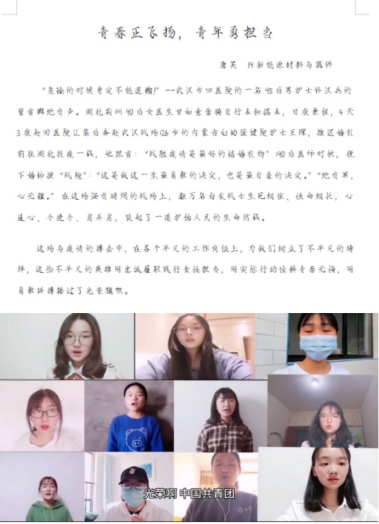 与此同时,在分团委的领导下,学院各班团支部围绕“弘扬五四精神,绽放战疫青春”主题,开展一系列主题团日活动。