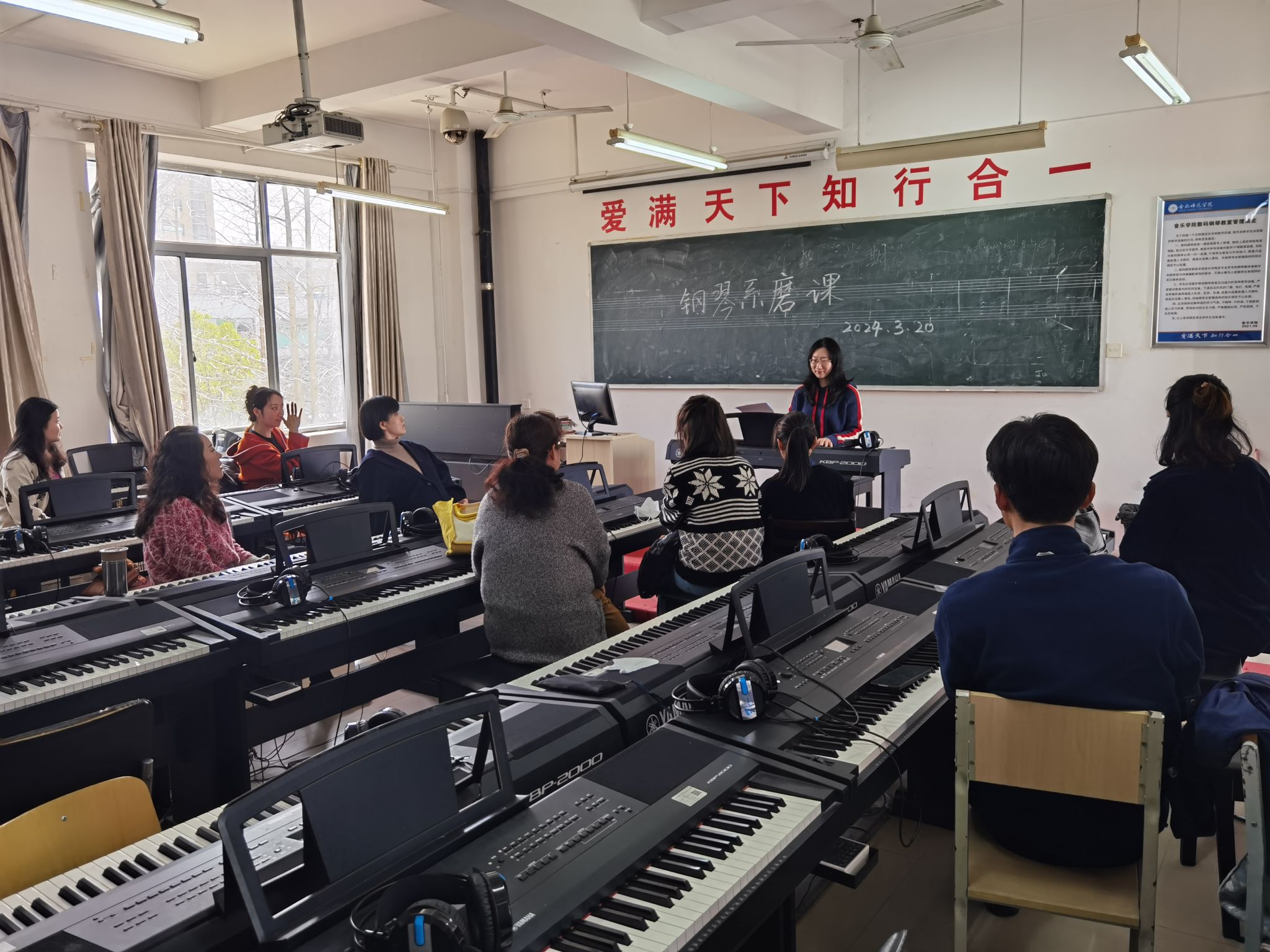为贯彻落实学校新一轮本科教育教学审核评估评建工作总体部署要求,切实提升课堂教学质量,打造优质课堂,促进教师教学能力提升,自2023年10月起,音乐学院就部署了系列教研活动,本次系列教研活动分为三个环节,一是课程标准修订,二是教学设计研讨,三是无生授课与研课。在课程标准修订环节,音乐学院分四个教研室,分别对上一版课程标准进行了修订,本次课程标准修订涉及音乐学和音乐表演两个专业共112门课程,在全体教师的共同参与下,课程标准的修订工作已经进入专家审核阶段;在教学设计研讨环节,学院四个教研室分别对理论、声乐、钢琴、器乐等专业核心课程、专业基础课程、专业拓展类课程、教师教育类课程、行业课程进行了教学设计层面的展示与研讨,各项工作正在有序推进;在无生授课与研课环节,各教研室分别采取无生授课和集体讨论的形式对课程设计、教学方法、教学内容、课程思政等关键项进行深入的交流和探讨。3月20日,钢琴教研室开展专业课程集中研讨活动,活动由教研室主任杜烜主持,教研室全体教师参与。