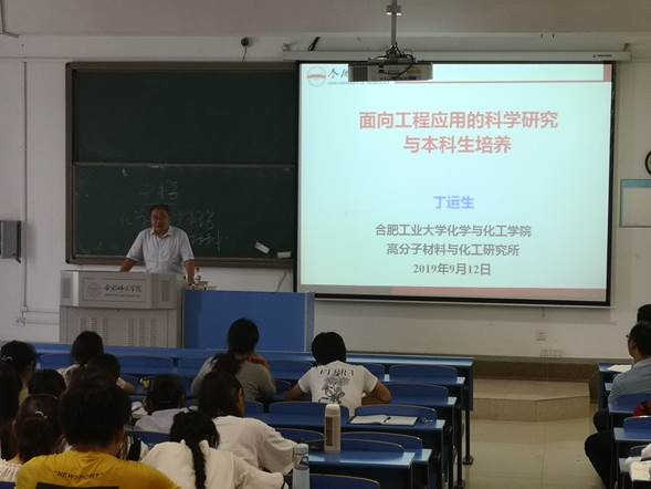 本网讯 9月12日,安徽省食品药品检验研究院药包材检测室主任王国勤,合肥工业大学化学与化工学院副院长、博士生导师丁运生教授来我校分别作题为《药品包装系统及其质量控制》《面向工程应用的科学研究与学生培养》的学术报告,讲座在逸夫楼西阶二教室举行。本次讲座由化学与化学工程学院制药工程系主任郑斌主持,制药工程专业教师、学生一同聆听学习。