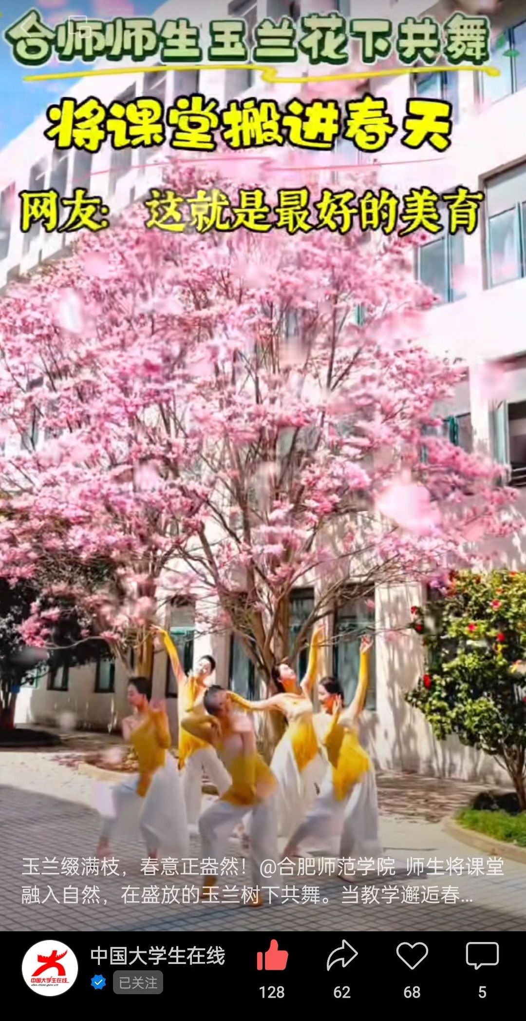 【安徽省教育厅官微】玉兰花下师生共舞