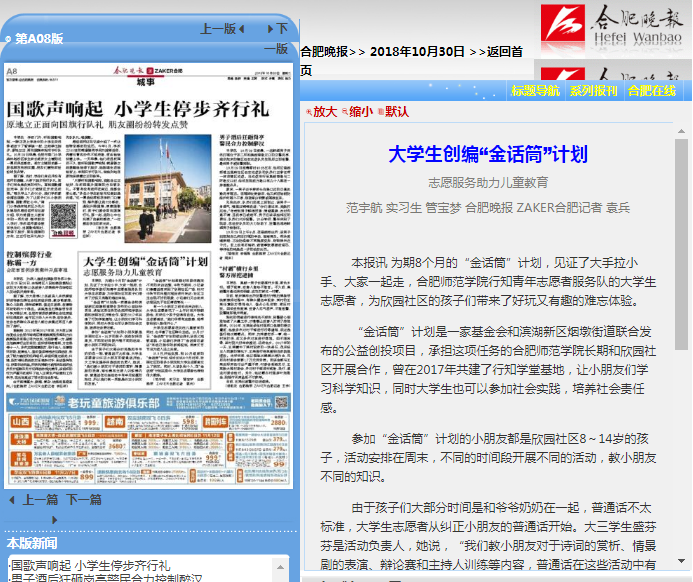 新闻链接:http://epaper.hf365.com/hfwb/html/2018-10/30/content_472182.htm
